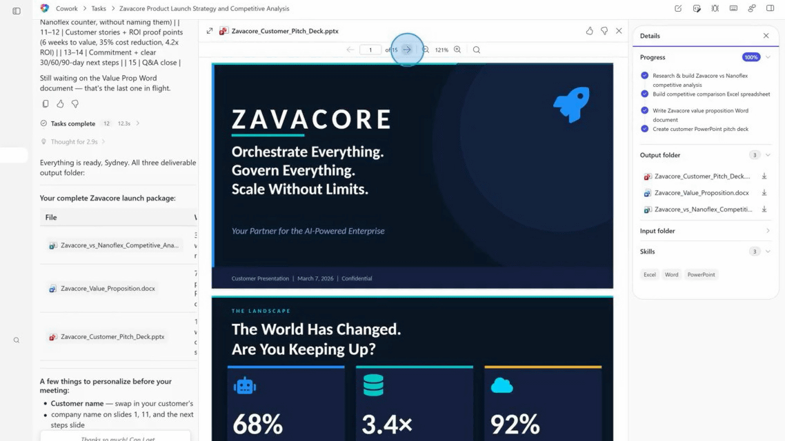 Claude for ExcelとClaude for PowerPointが会話を引き継ぐ形で連携可能になり、アプリ切り替え時に指示し直す手間が不要に。分析→スライド作成の一連の流れをシームレスに実行でき、頻出タスクを「スキル」として保存・再利用する機能も追加。