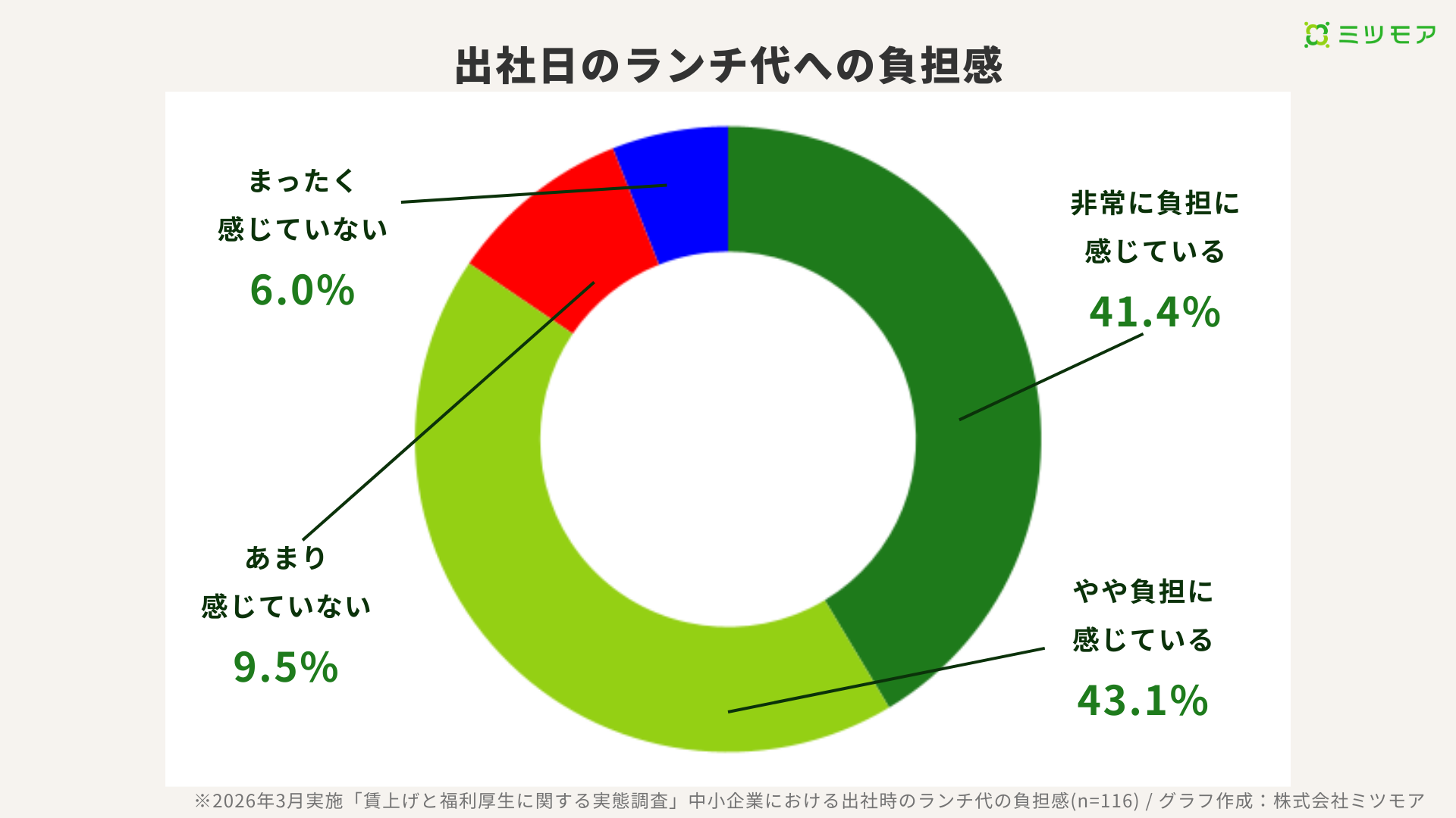 中小企業の若手の約8割が、福利厚生の充実により離職を踏みとどまると回答。4人に1人が出社のたびに昼食を抜く実態も明らかに。