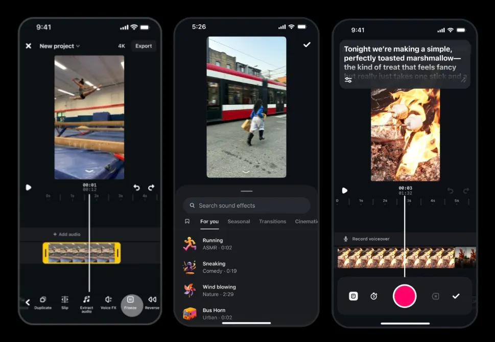 MetaのReels編集アプリ「Edits」に、フリーズフレーム・パーソナライズサウンドエフェクト・ボイスオーバー用テレプロンプターの3機能が新たに追加。動画の訴求力強化とナレーション作業の効率化が両立できるように。